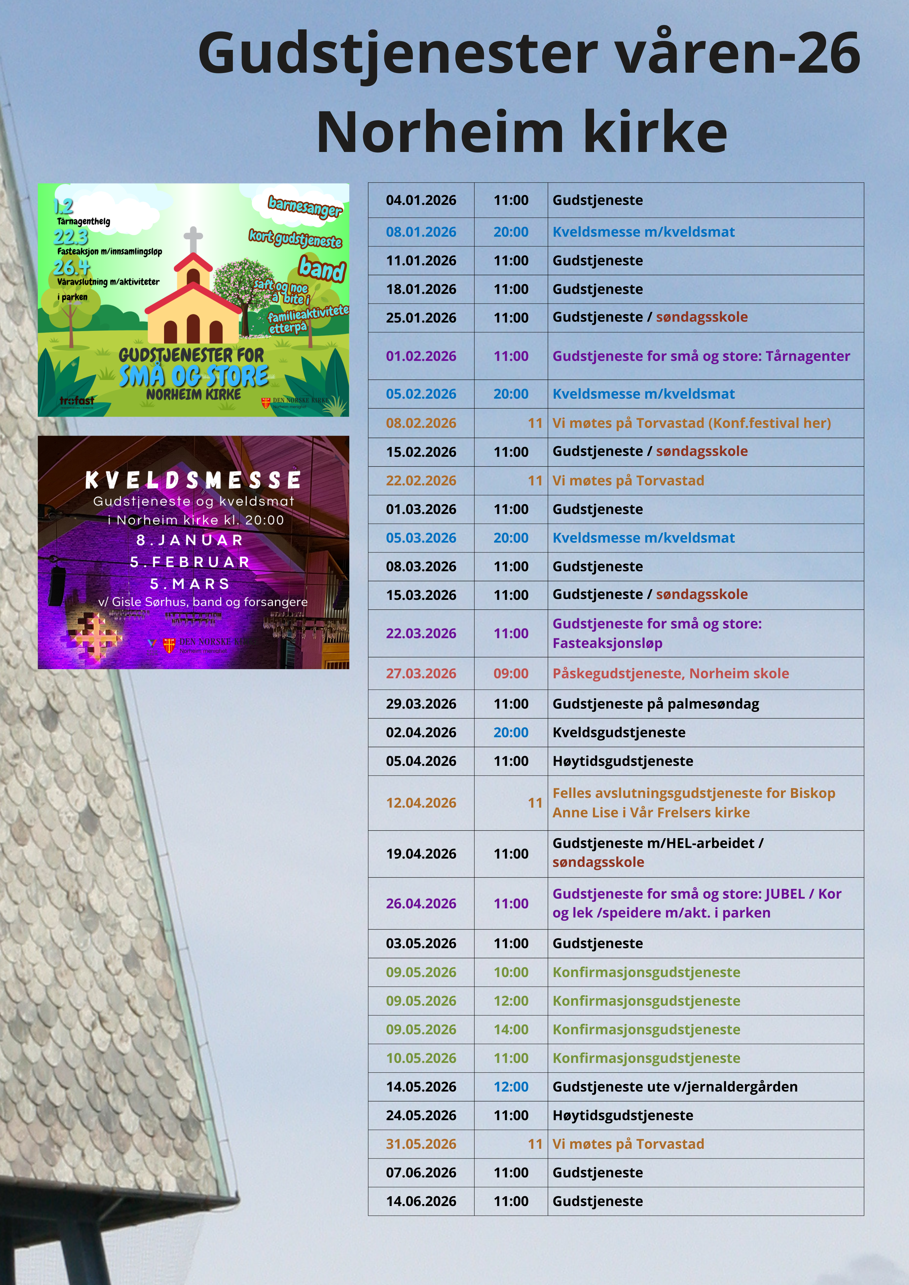 Gudstjenester våren 2026